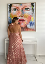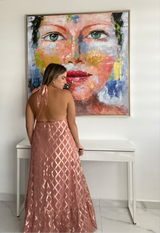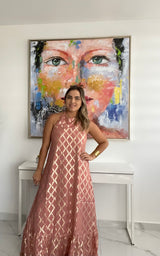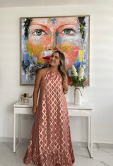 Boho Halter Maxi Dress – Elegancia y frescura en cada paso. Déjate envolver por la magia bohemia con nuestro Boho Halter Maxi Dress. Su diseño halter estiliza la figura, mientras que su corte maxi y su tejido ligero ofrecen una caída fluida y sofisticada. Perfecto para días soleados, noches especiales o irte de vacaciones, Definitivamente lo amarás, el vestido lo dice todo.