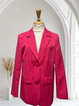 Esta blazzer en color fushia es el complemento perfecto para cualquier ocasión. Su tono vibrante y llamativo te hará destacar en cualquier evento. Además, su diseño versátil te permite lucir elegante y sofisticada tanto en el trabajo como en una salida casual. ¡Agrega un toque de color a tu guardarropa con hermoso blazzer!