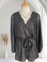 Esta temporada de fiestas, deslumbra con nuestro Cloe Romper corto de lentejuelas. Diseñado para mantenerte cómoda mientras brillas, este romper es perfecto para cualquier ocasión. Puedes combinarlo con tenis para un look casual o botas y tacos para un toque elegante. ¡No te quedes sin el tuyo!