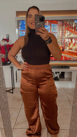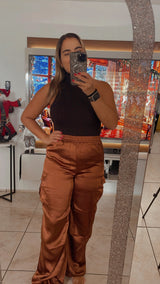 Enjoy style and comfort with our beautiful bronze cargo pants. With its modern and unique design, you can wear them on any occasion, whether casual or formal. A must-have item in your closet.