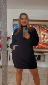 This comfortable Lulu Dress is perfect for traveling. Its high neck will keep you warm in cold weather and its pockets make it practical for carrying your belongings. You can wear it in different ways, either alone, with sneakers or with thermal tights and boots. Adaptable for different occasions and styles.